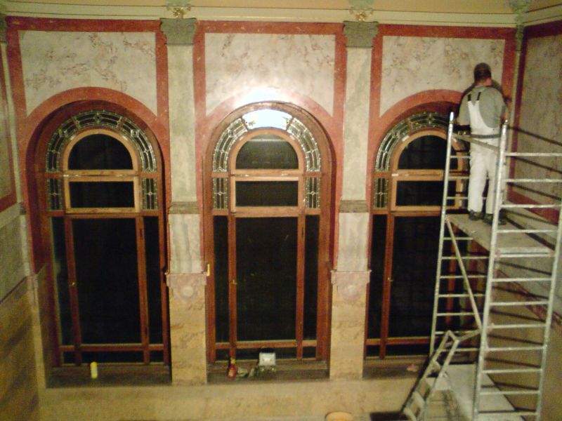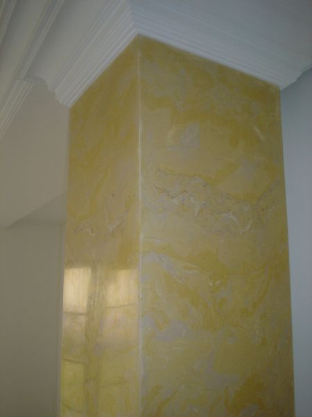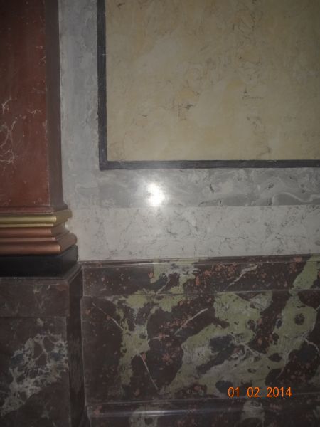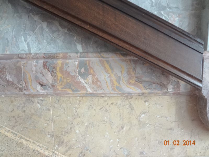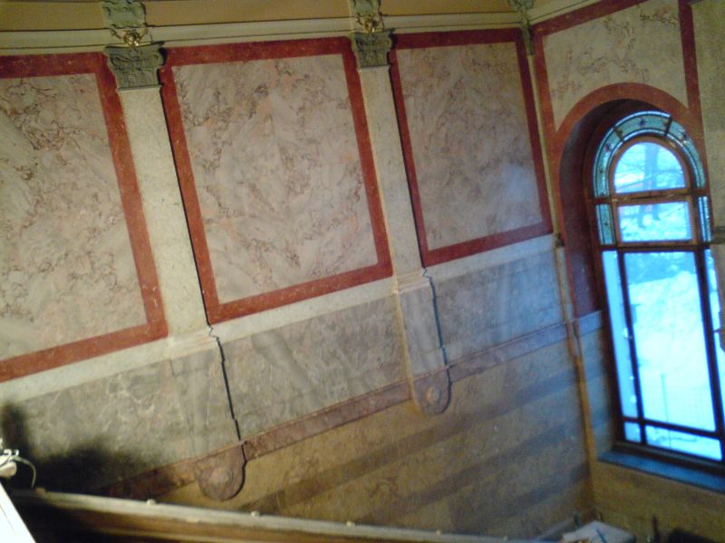 Stuckmarmor ist ein Imitat echten Marmors und wird natürlich vom Stukkateur hergestellt. In vielen hiesigen Stuckhandwerksbetrieben ist diese Technik leider kaum noch geläufig. Ich beherrsche diese Technik und stehe gern mit Rat und Tat zur Verfügung.